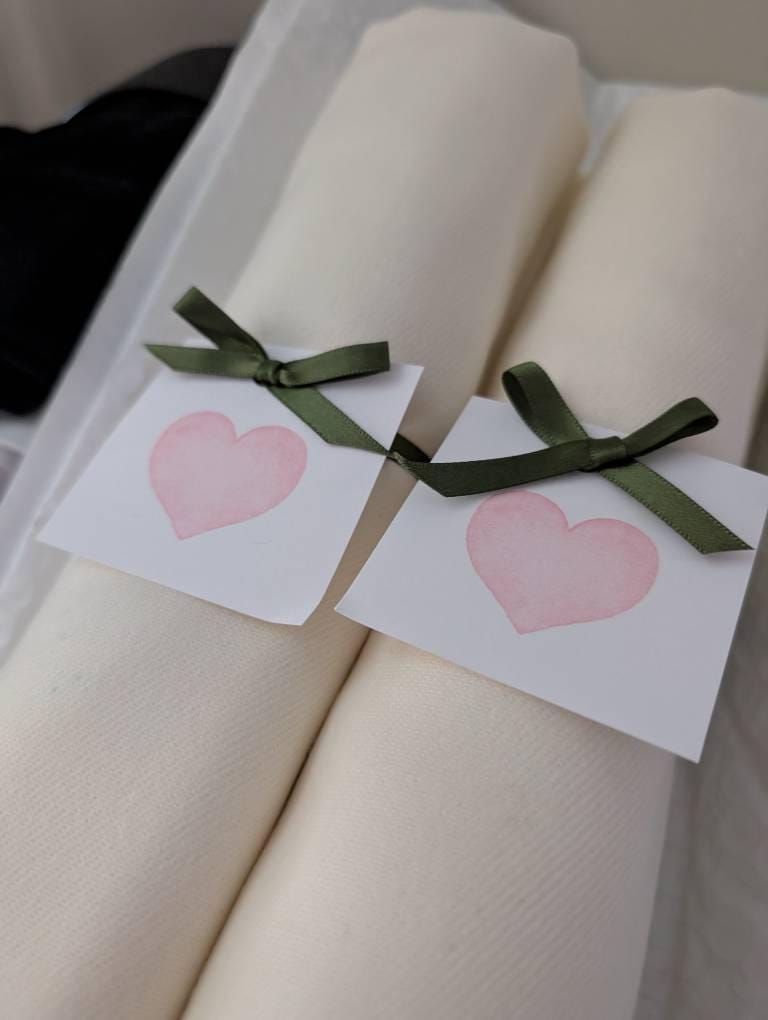 This link includes the pashminas any color or mix colors ( select mix colors from the drop down menu and send us the list with quantities in a note with your order), also includes 1 designing fee for the designer to work on your design, and all identical tags or bands. The pashminas come already assembled with the tags, ready to give as a gift to your guest.
