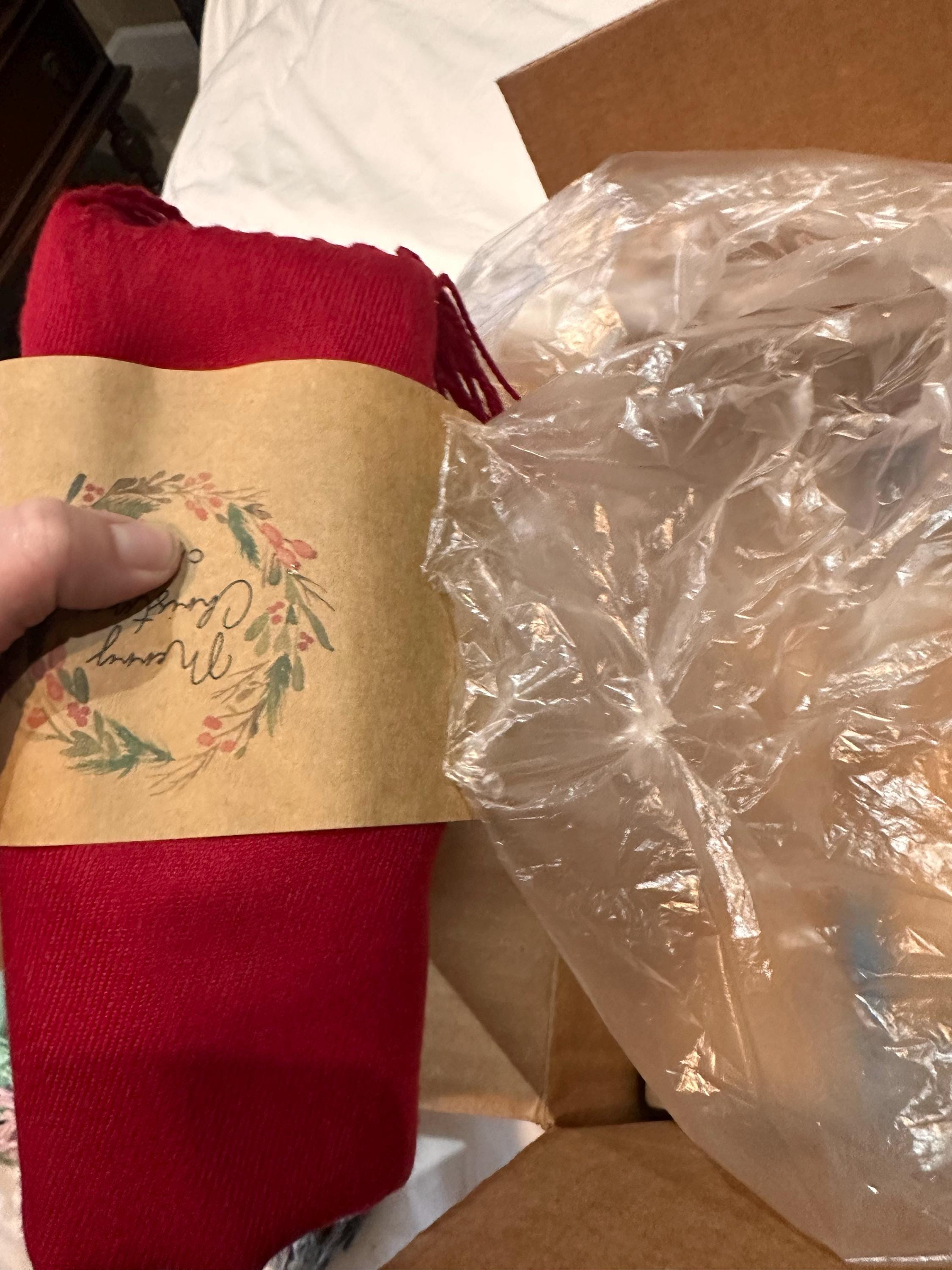 The scarves had some snags and the tags were glued to the packaging and the other tags (6 ordered). Colors were as expected and tags were pretty once gently unglued from each other. Also, the wrong names were matched to the wrong colors.